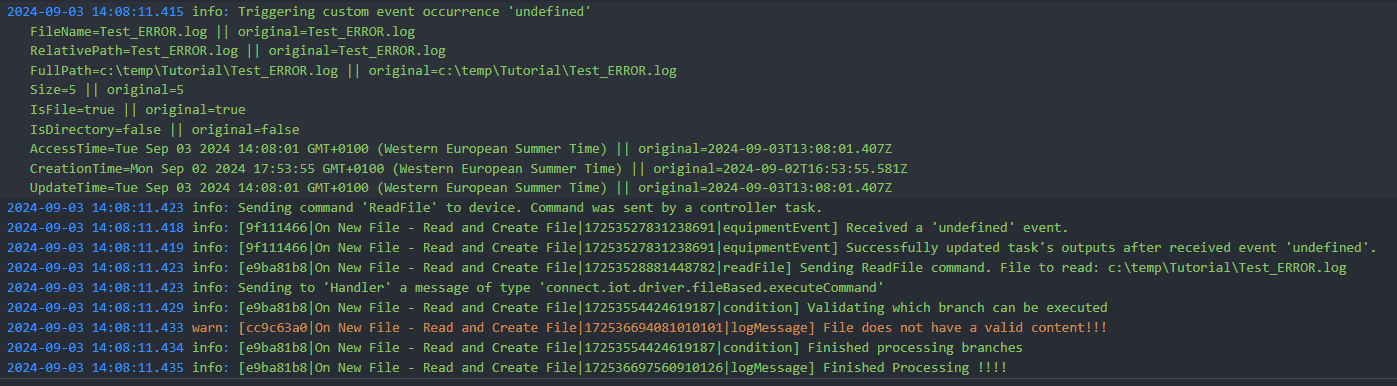 8. To finish our integration let us add a log message both for the else condition and for the end of the execution.