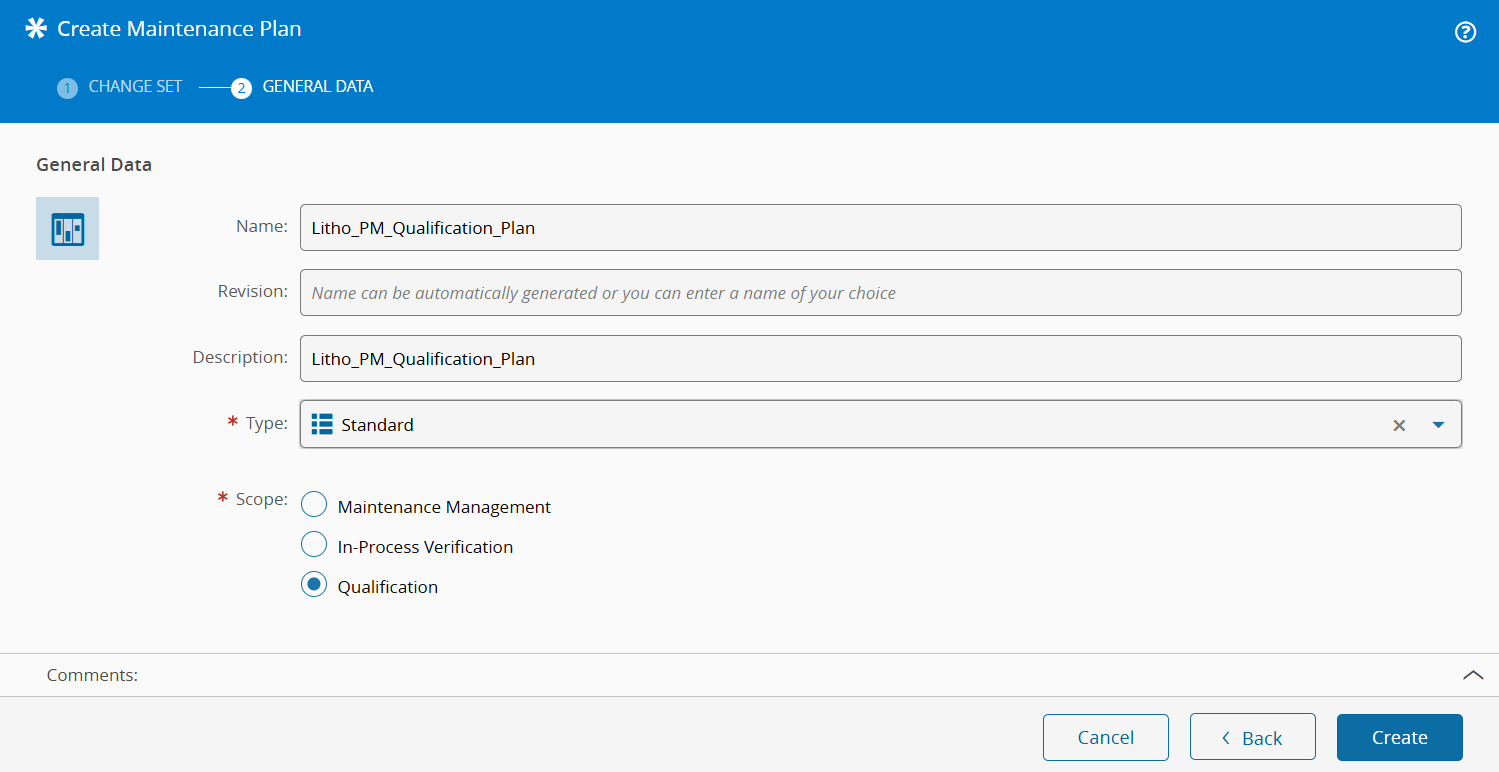 Once the Qualification and Verification details are configured, the Maintenance Plan can be finalized. To complete the configuration: