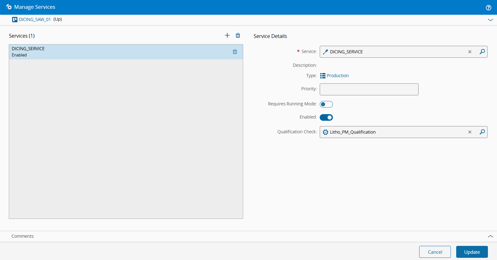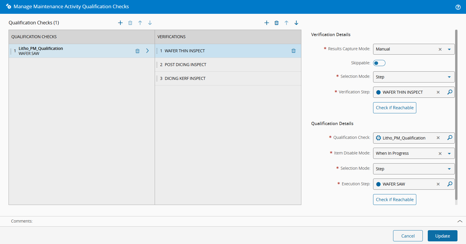 Litho_PM_QualificationQualification Check. - Select Update.