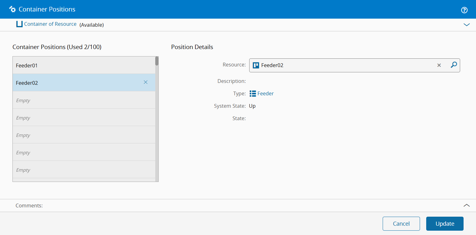 A Container can also be associated with a Resource when the Resource supports the position unit types defined in that Container type.