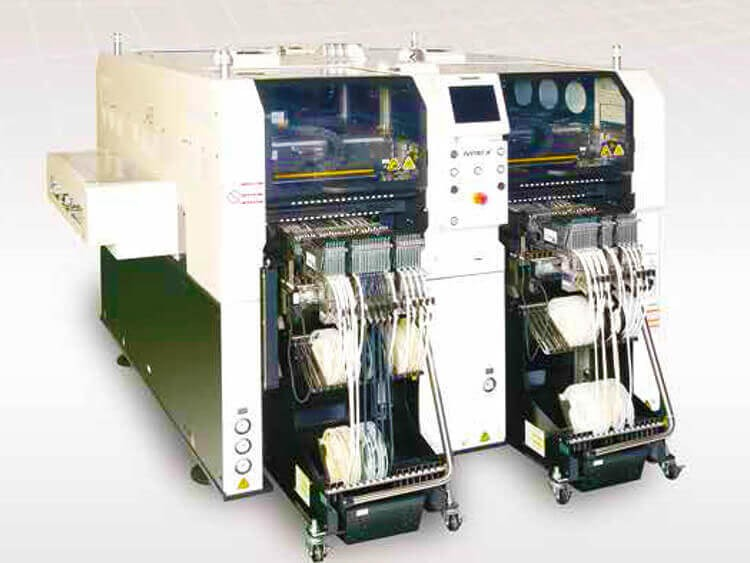In SMT lines, component placement machines can handle multiple feeder carts.