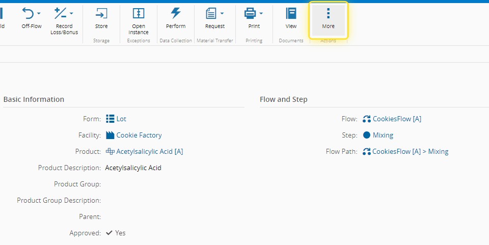 Depending on the configurations of the Step, the Dispatch operation button can be either on the upper section, along with the other options, or it can be in More.