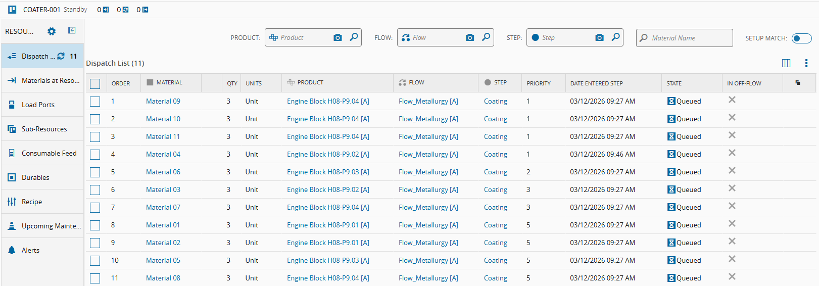 Coater-001Resource View again. The Materials are now sorted:- First by Priority
