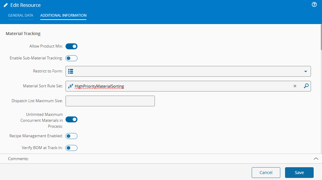 Scenario 2: Material Sort Rule Set on a Resource#