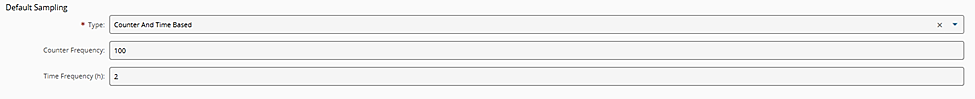 In Default Sampling, select a Type that matches the purpose of the Sampling Plan in the real use case. The available options are Counter And Time-Based, Counter-Based, and Time-Based.