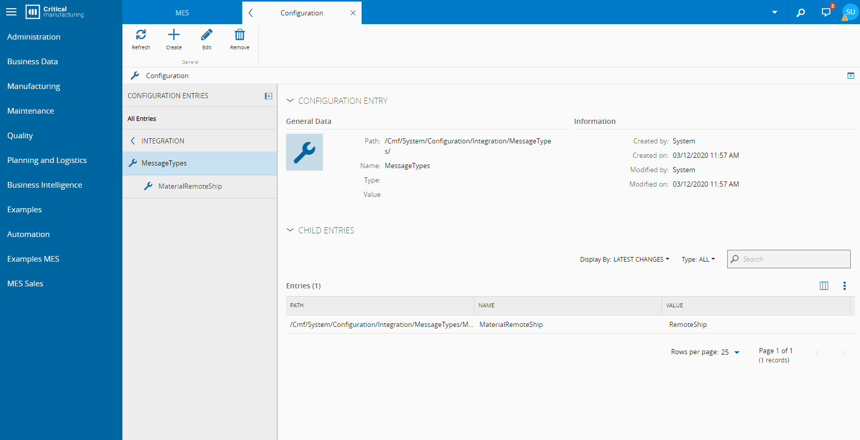 This integration package will be used for all integrations between Critical Manufacturing MES systems. For now, the product provides out-of-the-box Remote Material Shipment integration.