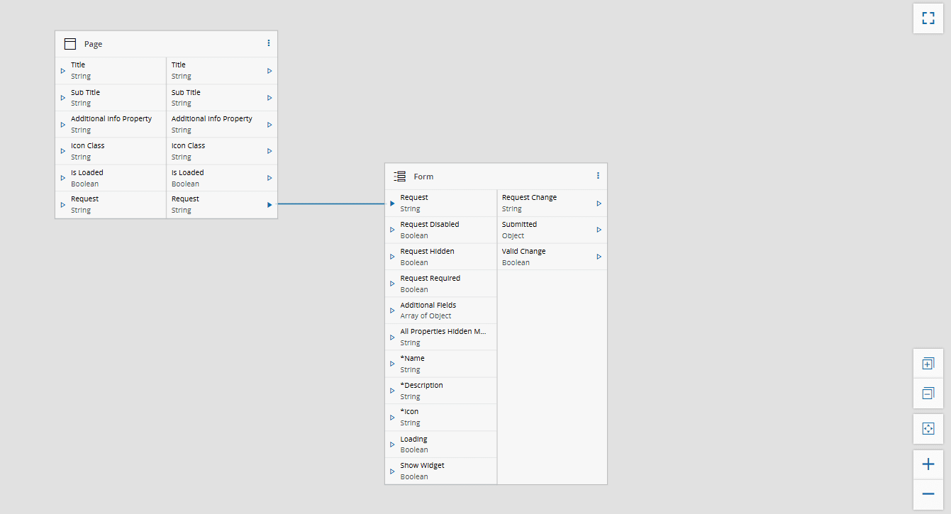 14. Connect the Form widget in the UI Page to the Action Buttons using the Links diagram, as shown below.