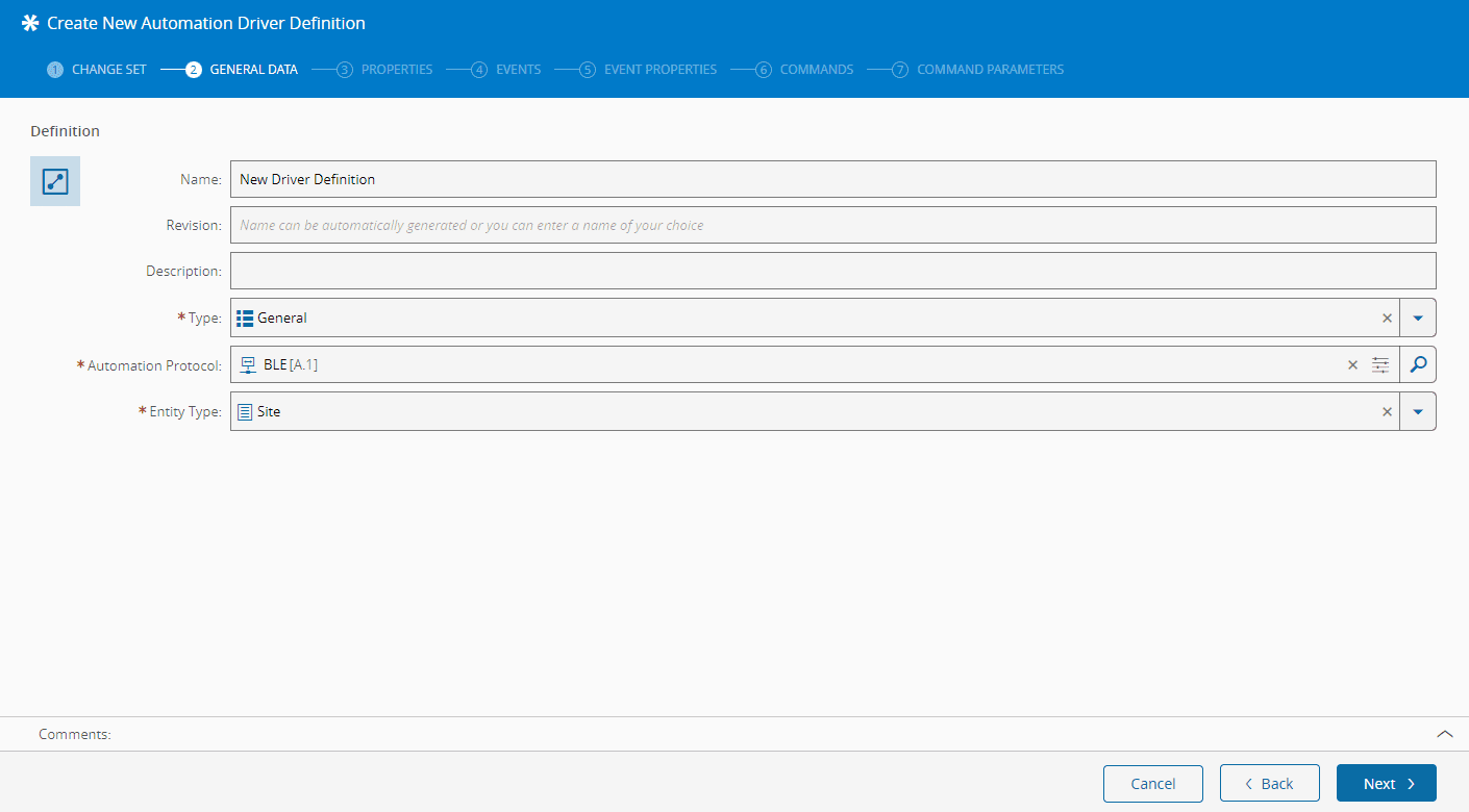 5. Select the Automation Protocol that will be used to communicate with the equipment.