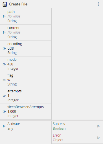 When activated, the create file task creates a new file or update the content of an existing one. The file path can be provided either by the input port or in the task settings.