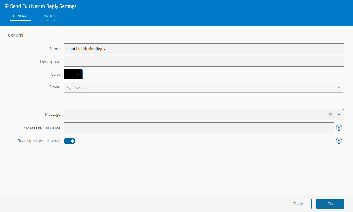 | Clear Inputs (on activate) | Boolean | true | Defines if it is to clear the input values after receiving an activate | |