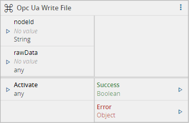 This task write data to a file in OPC UA server using the File Transfer feature. To be used with OPC UA driver in Client mode.