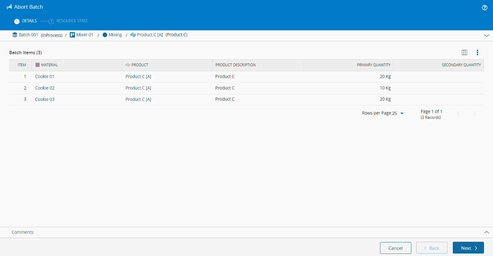 - Choose a Batch, then select the Abort button on the top ribbon.