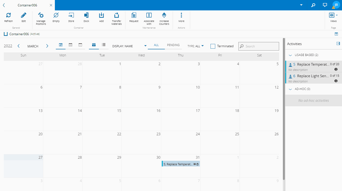 For Containers of PositionUnitType Material, a top-down view of the Container is made available to the user, displaying all the storage positions of the Container, including information on the stored Materials for each position. The user can zoom and drag the visualization and select each of the positions that are shown in grid form, with the pertinent information being displayed on the right-hand panel.