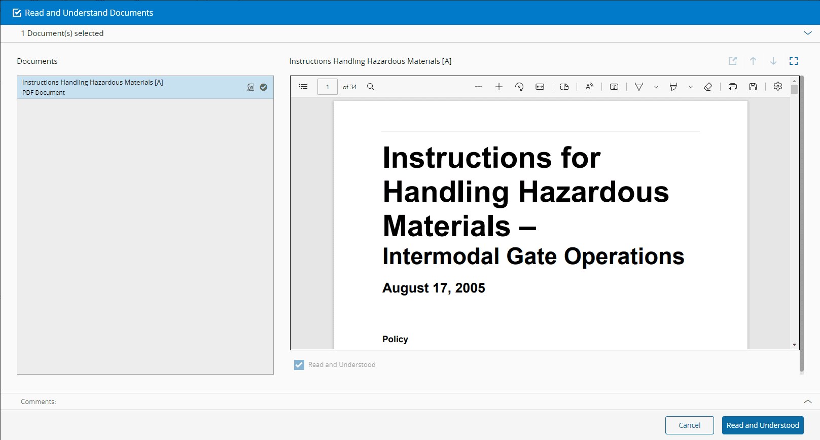 - Employee has not yet performed the Read and Understand for this particular document version.