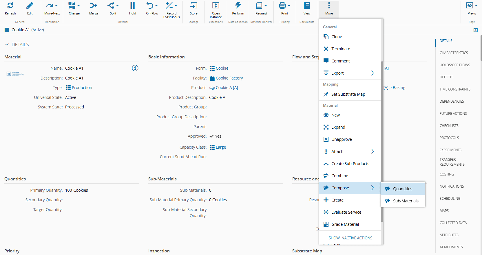 0and the Source Material Primary Quantity; Composed Secondary Quantity must be0and the Source Material Secondary Quantity (if a Secondary Quantity is defined for the Source Step).Note