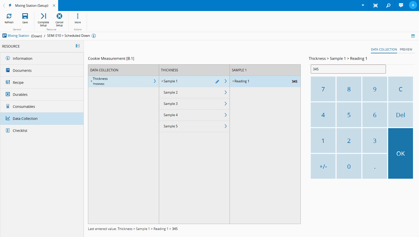 If the Setup Mode is different from Not Required (see preconditions), the Data Collection page will allow you to enter Sample readings at your own pace. The Data Collection is always Long Running when the Setup Mode is different from Not Required. This means you can keep the page open and use the Save button on the top ribbon every time you make changes, hence you do not need to enter readings all in one go: