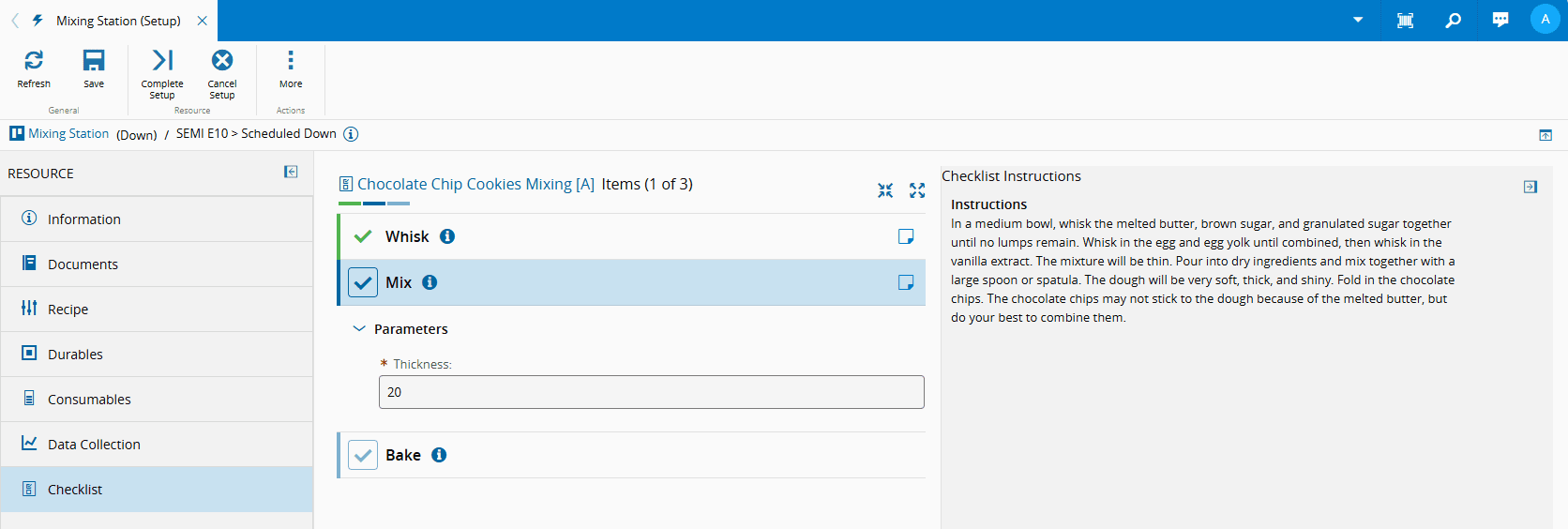 • The Setup Begin and Complete Mode is Manual Begin And Complete, and the Resource In Setup must be true.
