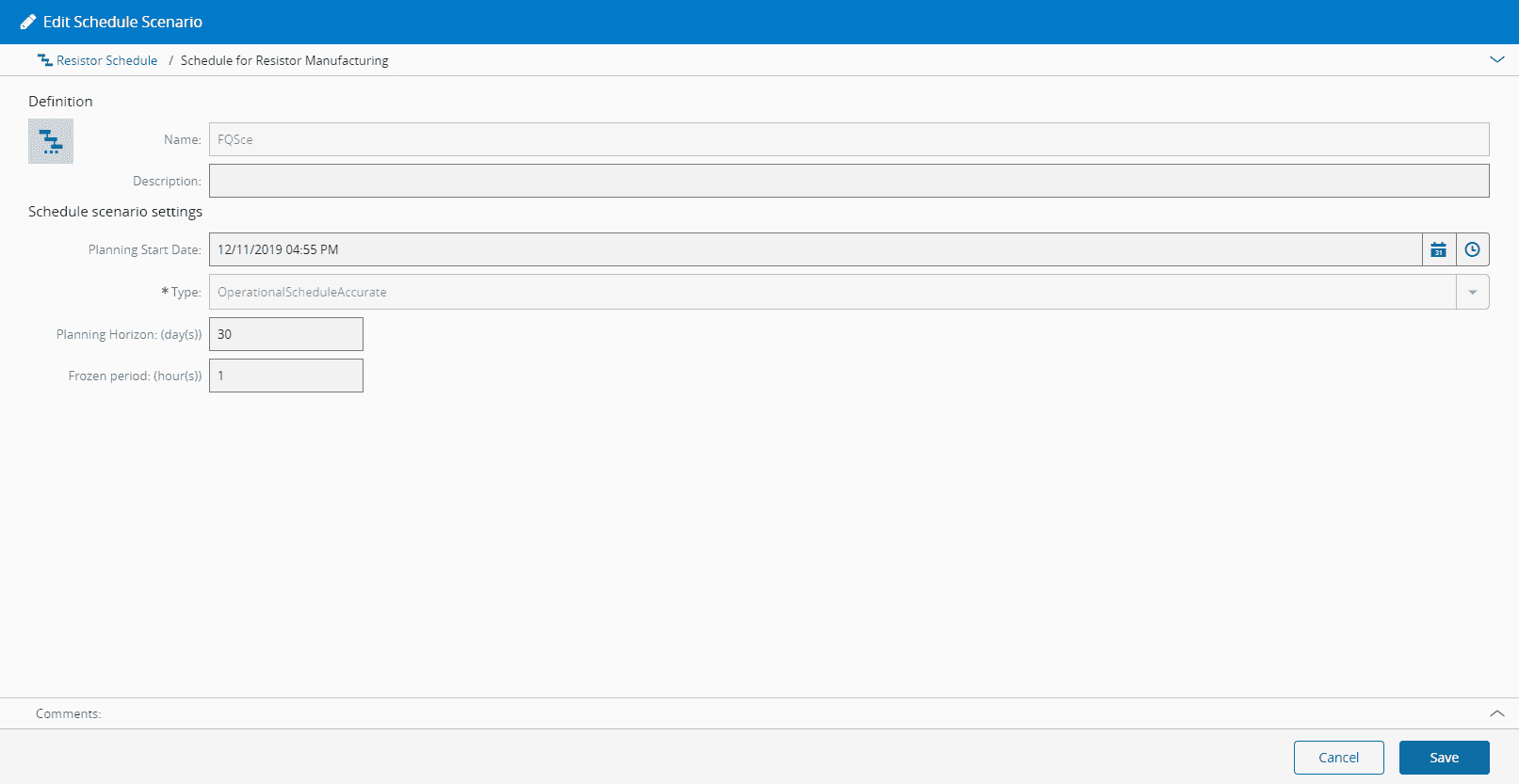 The Name of the Schedule Scenario cannot be altered.