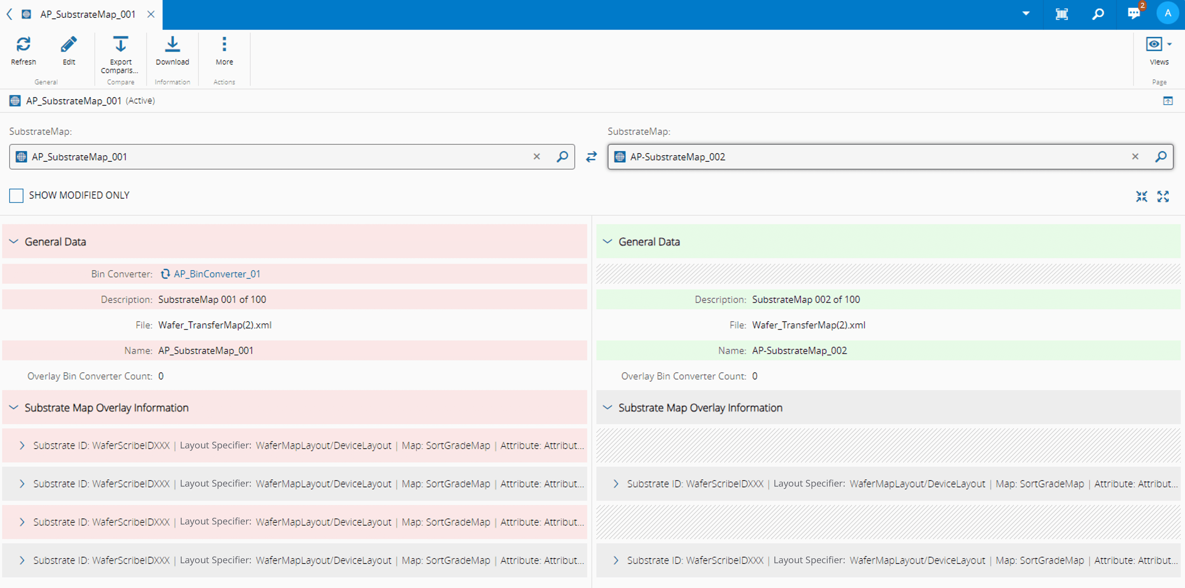The Download button on the top ribbon allows you to download the Substrate Map and Apply Bin Converter.