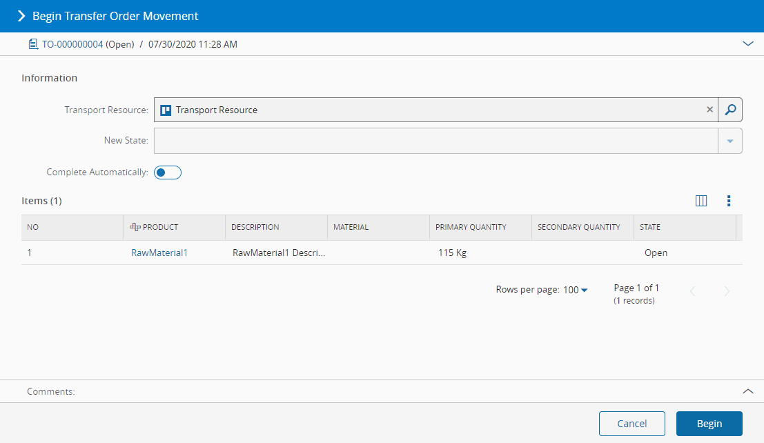 - If there is an Owner defined for the Transfer Order, the current Employee must match that Owner.