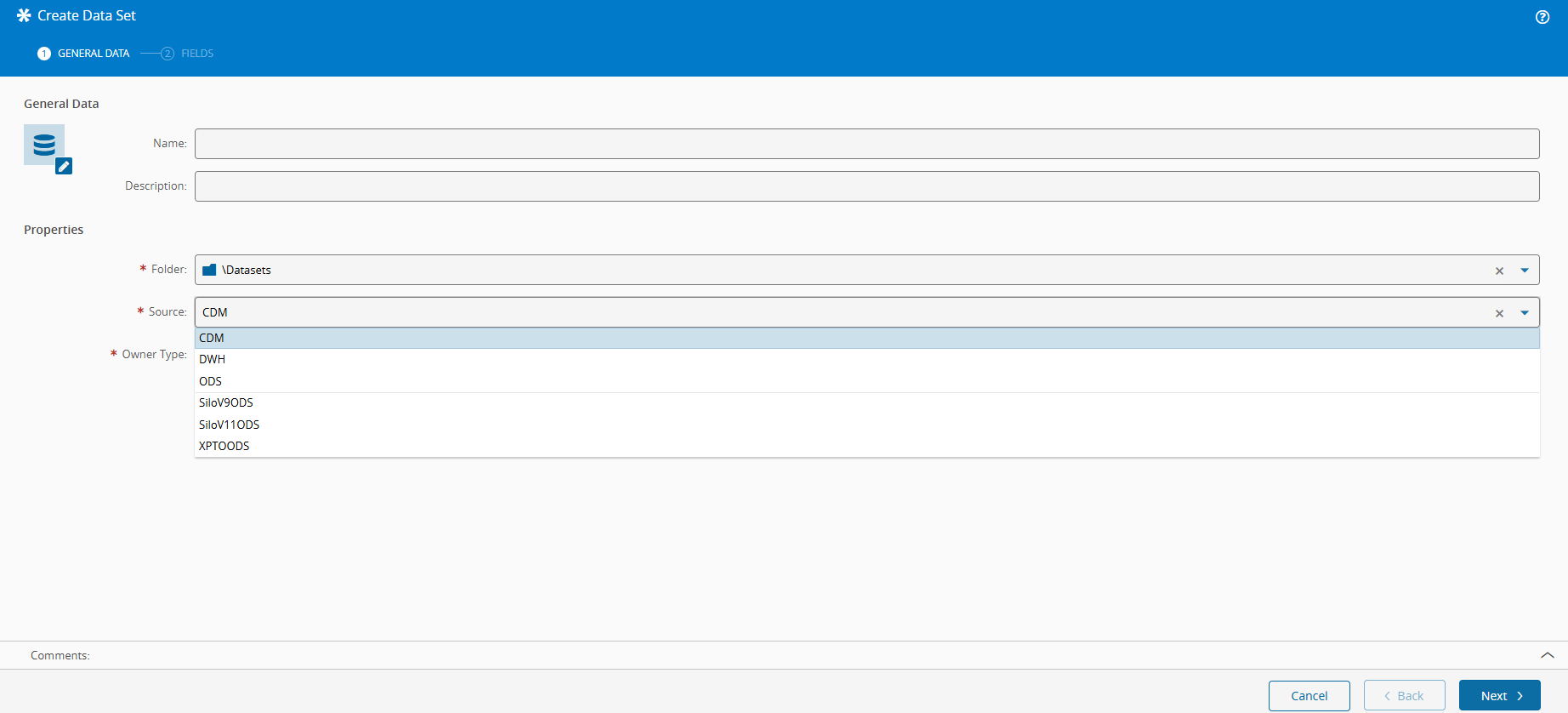 - User - select the Owner User for this Data Set.
