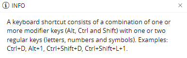 The Shortcuts tab allows you to view your User shortcuts. In this tab you can also remove already defined User shortcuts, and change their combination of keys: