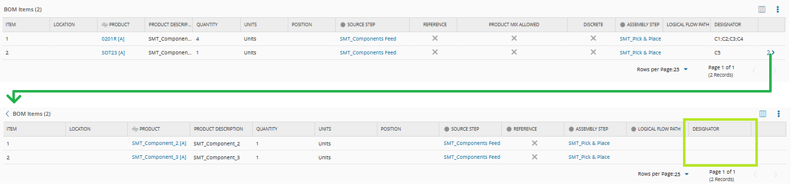 - The reference designators of the substitute BOM entry don't match the parent BOM entry's reference designators.