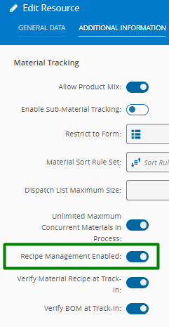 | MES PanaCIM Station X Resource | useRecipeManagement | True | Activate recipe management for the selected resource |
