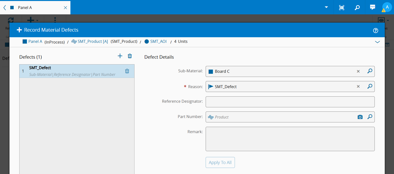 SMTUnitsExcludedattribute correctly. - Recording multiple defects on a single board will have the same effect as recording a single defect.
