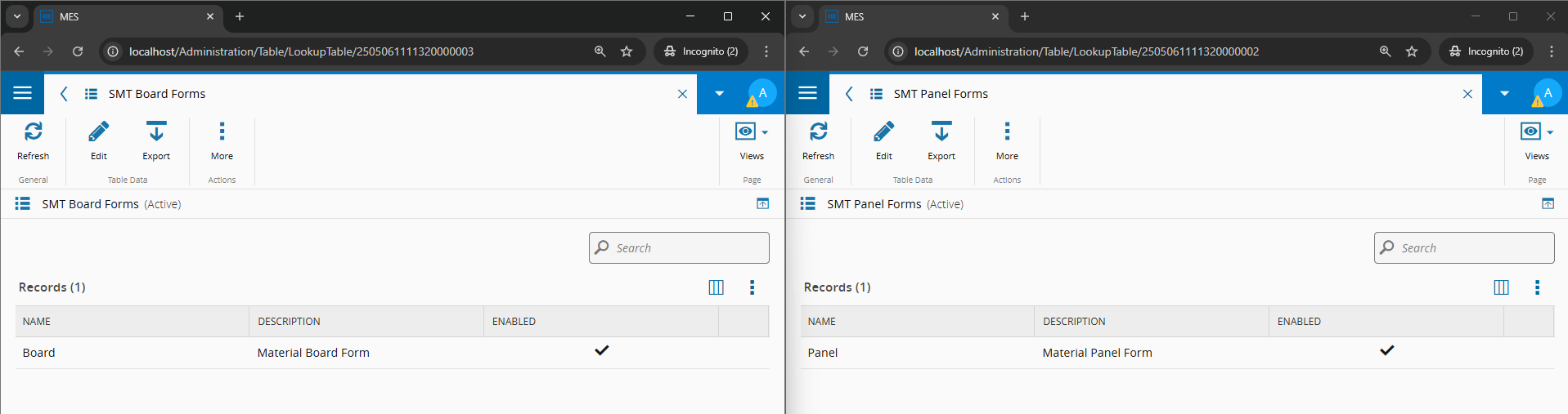 - The SMTBoardForms lookup table indicates the material forms that represent boards