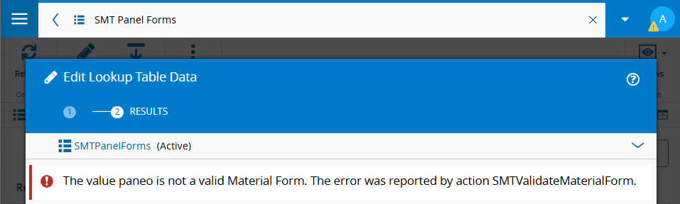 And another note: you will only be able to add values that are present in the MaterialForm lookup table. If you make a mistake and try to add a value that isn't a material form, you will be presented with the following error message: