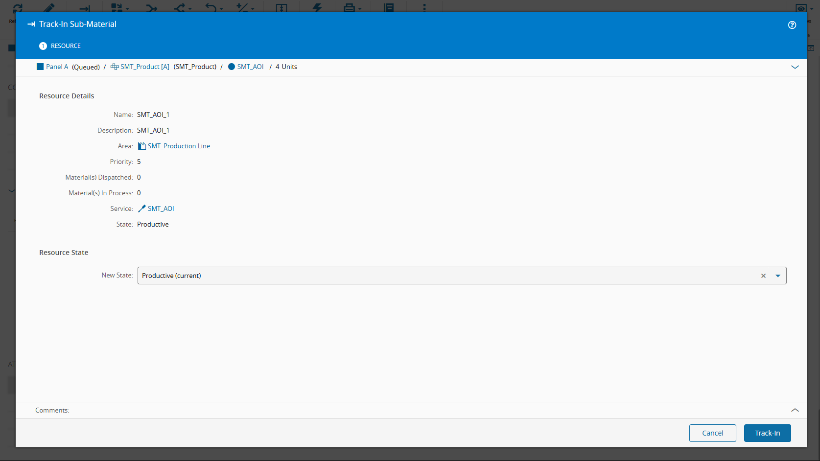 Let's track in the material into the SMT_AOI step and record defects on boards 3 and 4: