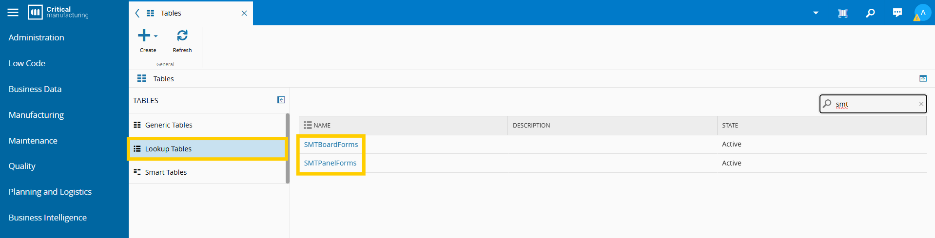Select Lookup Tables and then select the SMTBoardForms and SMTPanelForms tables.