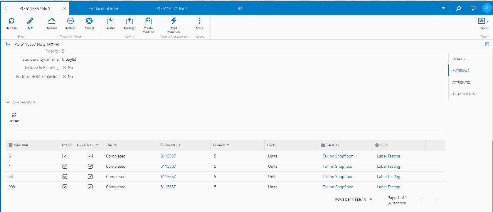 Open the Production Order you wish to reassign materials to (PO 5115857 No 3):