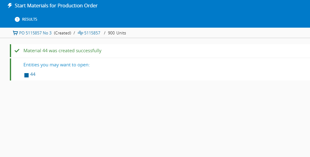 You will get the following response, meaning the Material was reassigned to the new Production Order successfully: